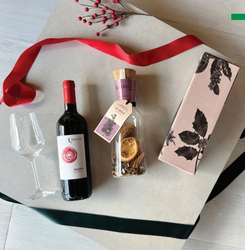 Scatola regalo: COFANETTO 3 Vergella rosso SELEZ. RIGONI Miscela Vin Brulè MERIDIANI Calice vetro