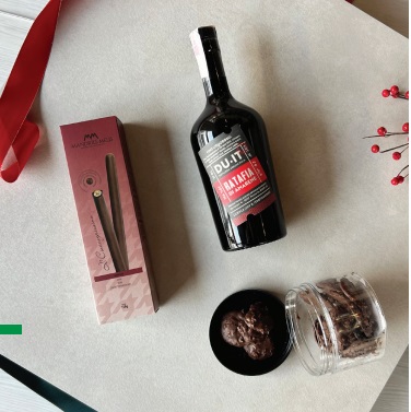 Scatola regalo: COFANETTO 2 Ratafia di Amarene DU.IT Cioccogrissini MELIS gr 150 Gocce alla nocciola CERRATO gr 180