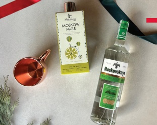 Scatola regalo: COFANETTO 2 Vodka MOSKOVSKAYA Shaker Moskow Mule MERIDIANI Mug rame